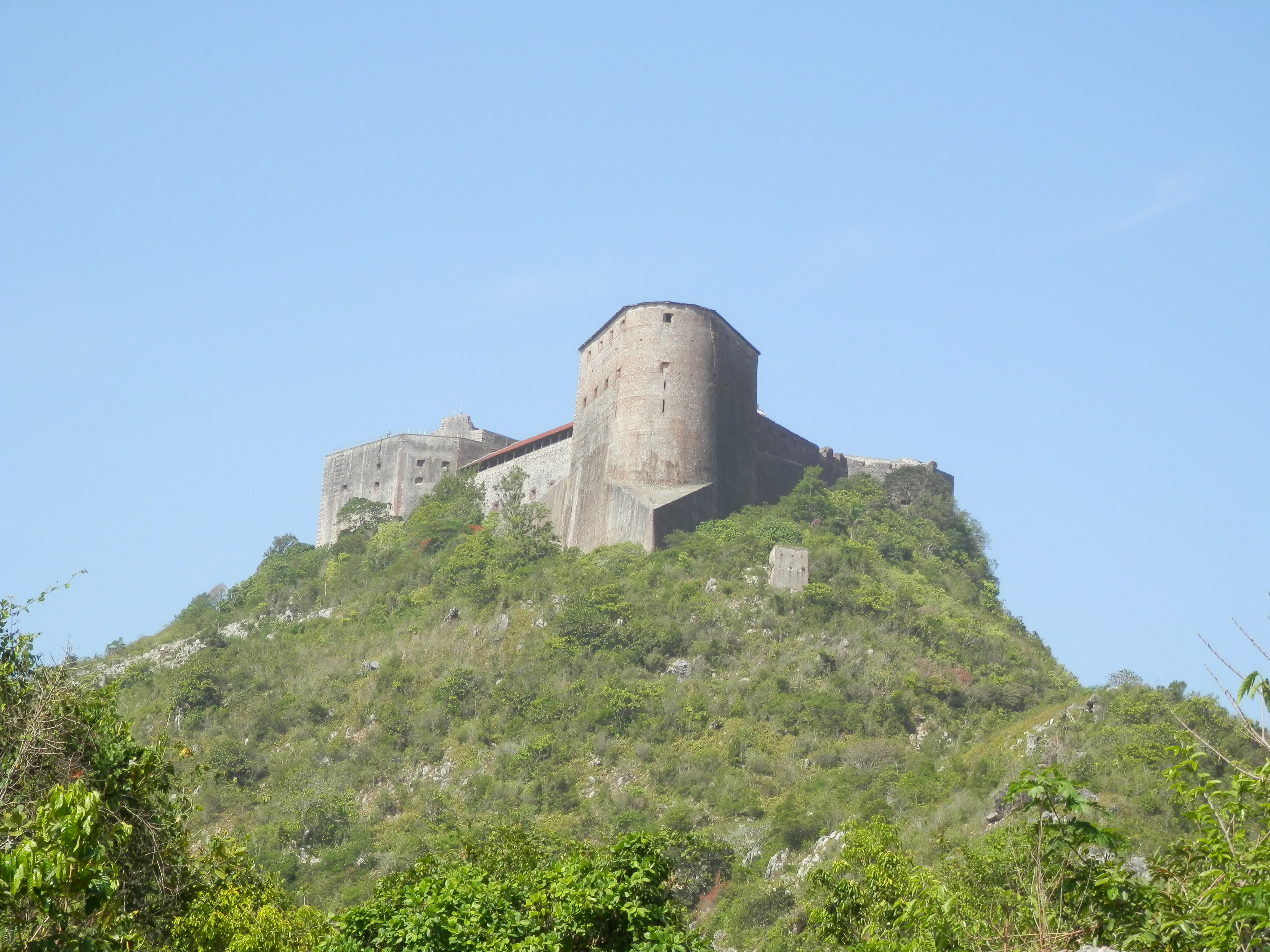 I SAT ALONE in the dining room the next morning, waiting for Hayley to join me. Ceiling fans whirled noiselessly in the empty room while I jotted notes in my journal. The Imperial felt like one of those forgotten colonial enclaves you see moldering in hot countries the world over. The Imperial had never been a colonial haunt, it had simply gone straight to seed. The night before, Gil had made arrangements for us to be picked up by one of his friends on a motorcycle taxi. Our destination was the Citadelle LaFerrière. The Citadel is the largest fort in the Americas, constructed by Henri Christophe, a slave who became a general in Haiti’s war of independence against the French. After the war, the rebel general Jean-Jacques Dessalines proclaimed himself Emperor. He was soon assassinated, but Henri Christophe followed his lead, proclaiming himself “King of Haiti, Sovereign of [the] adjacent islands, Destroyer of tyranny, Regenerator and Benefactor of the Haïtian nation, Creator of her moral, political, and martial institutions, First crowned monarch of the New World, Defender of the faith, Founder of the Royal Military Order of Saint Henry.” He was an unpopular autocrat and, consumed by paranoia, took his own life.